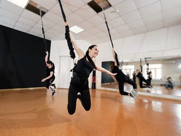 This 30-minute class is suitable for those who are new to exercise or recovering from injuries. These classes involve no flying around the room but a basic introduction to getting comfortable in the harness and taking the pressure off the joints. Very suitable for seniors, injuries and those with little or no confidence in the fitness world.